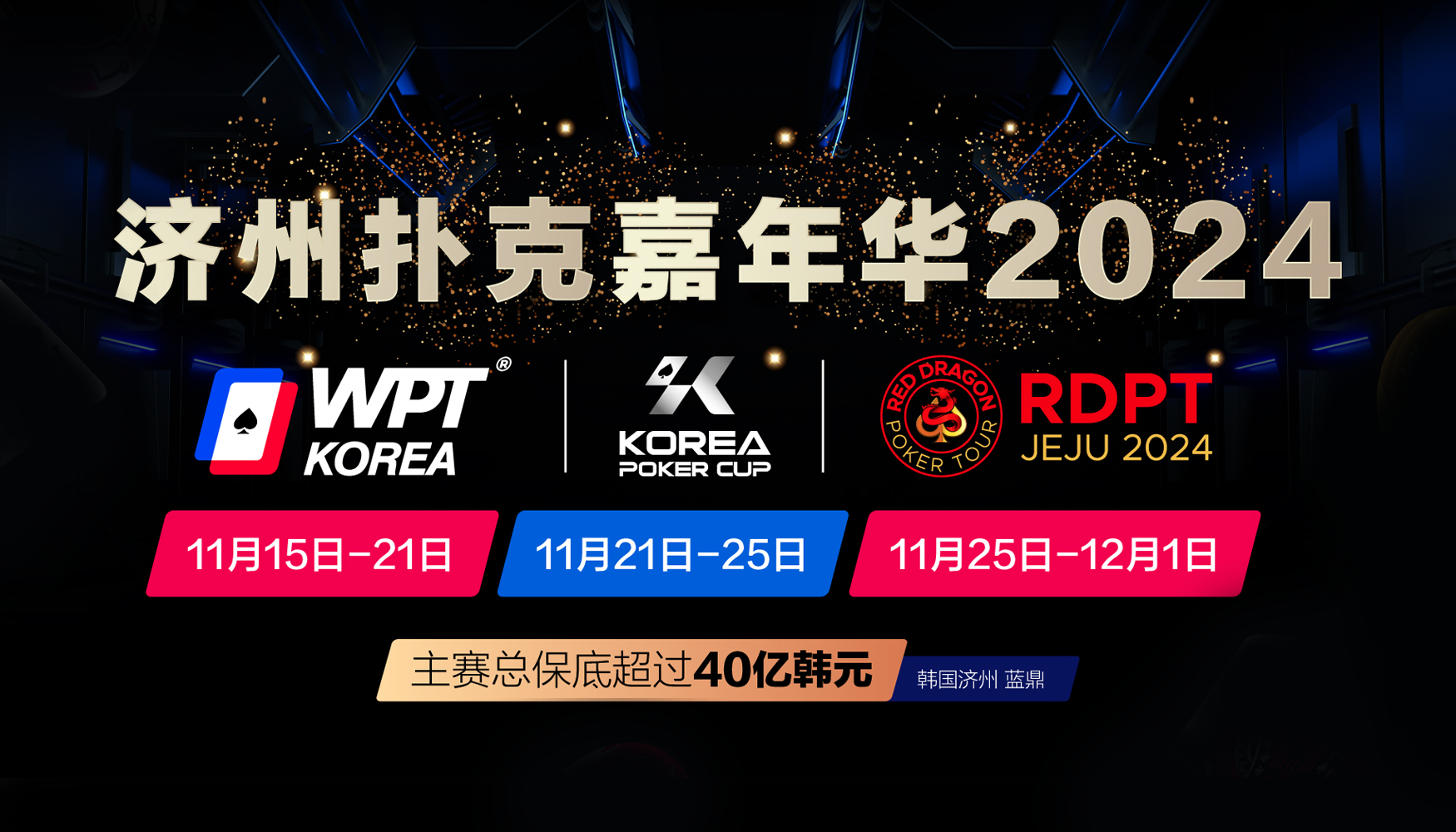 2024年底,准备好迎接40亿韩币保底的扑克盛事了吗? 11月15日至12月1日,被众多国际赛事品牌青睐有加的济州岛,将迎来第一场由多方品牌携办的赛事嘉年华,见证以下赛事联袂登场: WPT Korea 世界级国际赛事品牌 WPT(世界扑克巡回赛)自2002年成立以来,已在全球多个国家举办了数百场赛事,每到一处都能吸引当地扑克玩家的踊跃参与,也常有世界各地顶尖选手慕名而来,成为扑克爱好者和职业选手梦寐以求的舞台。 WPT韩国站2023、2024两站接连创造参赛人数玩家纪录以及主赛奖池纪录,良好的参赛体验,超高的奖金,群星熠熠的赛场是每一个扑克爱好者必来的逐梦之地。 韩国扑克杯(KPC)重磅来袭的韩国新生赛事品牌 KPC于2024年6月成立,致力于推广韩国扑克竞技文化的发展,让更多人感受到扑克的魅力,推动济州岛成为亚洲最受欢迎的扑克热点,KPC成立后,迅速在扑克界崭露头角,它相继于本年7月和9月分别与第三方赛事品牌作冠名合作后,本次嘉年华期间, KPC将首次以主办方正式亮相。 作为本土赛事品牌,这次又再与世界扑克巡回赛(WPT)和红龙扑克巡回赛(RDPT)联办济州扑克嘉年华,其 […]
